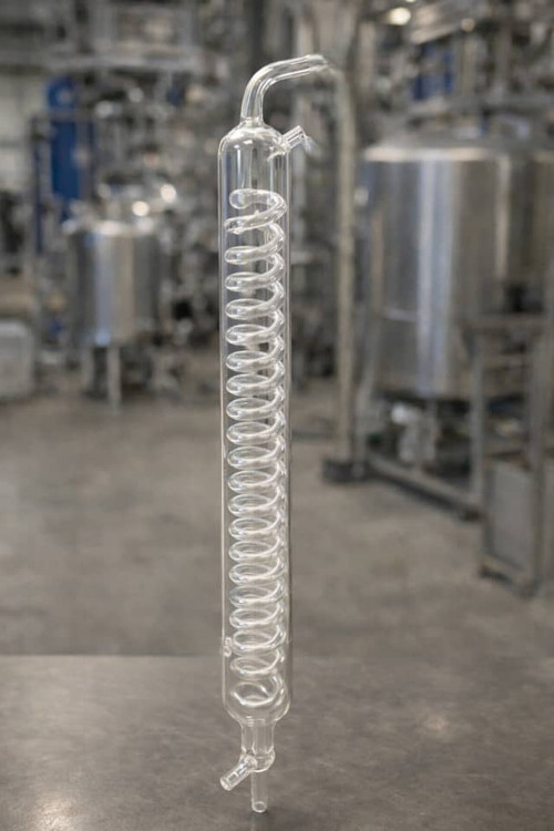🔧کندانسور پیرکس آبی لوله مارپیچ یکی از بهترین گزینهها برای خنکسازی بخار در دستگاههای تقطیر است. این کندانسور از شیشه پیرکس ضخیم و شفاف ساخته شده که در برابر حرارت و شوک دمایی مقاومت بالایی دارد.